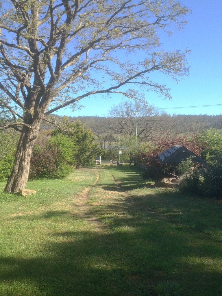 A long, gravel driveway that wound its way up a slight hill towards the main street. Rambling fences, with paddocks either side.