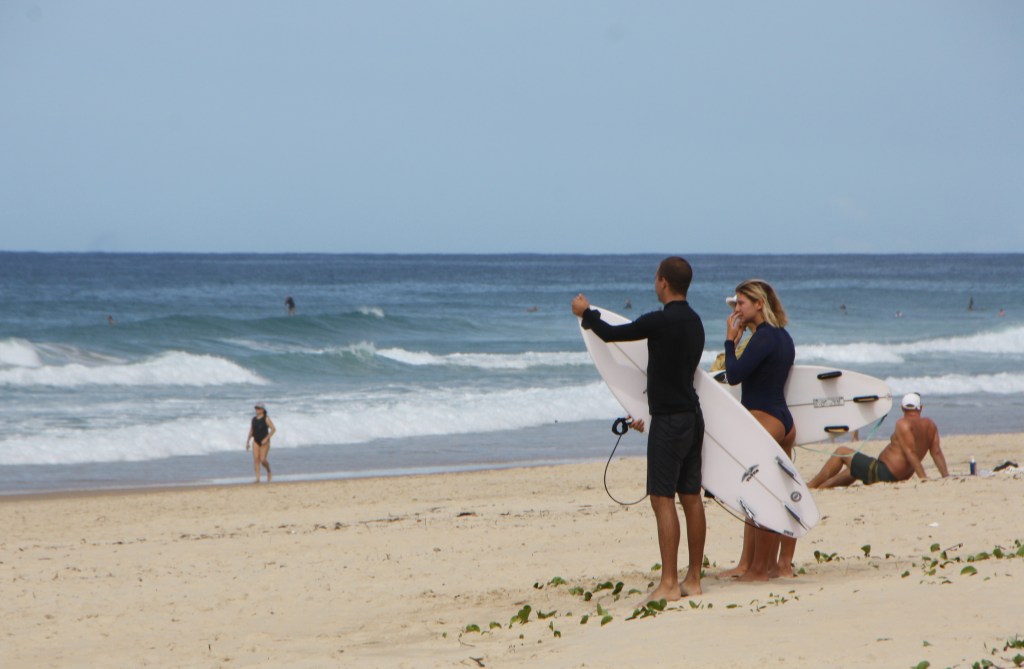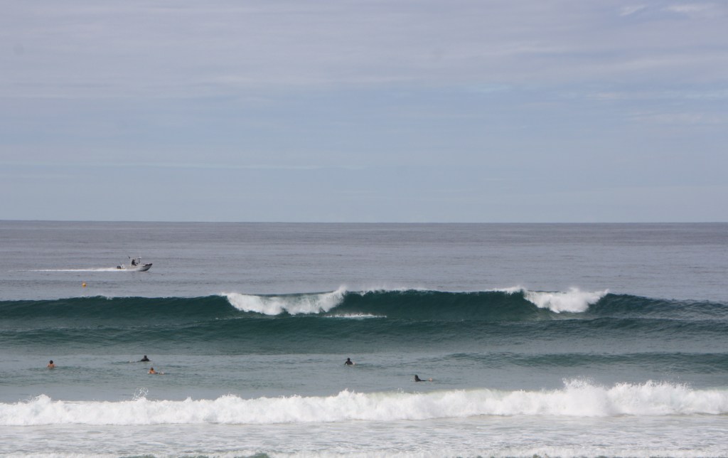 The beach is a picture on this day. A good surf break, gentle breeze from the south-east and the sun is shining.